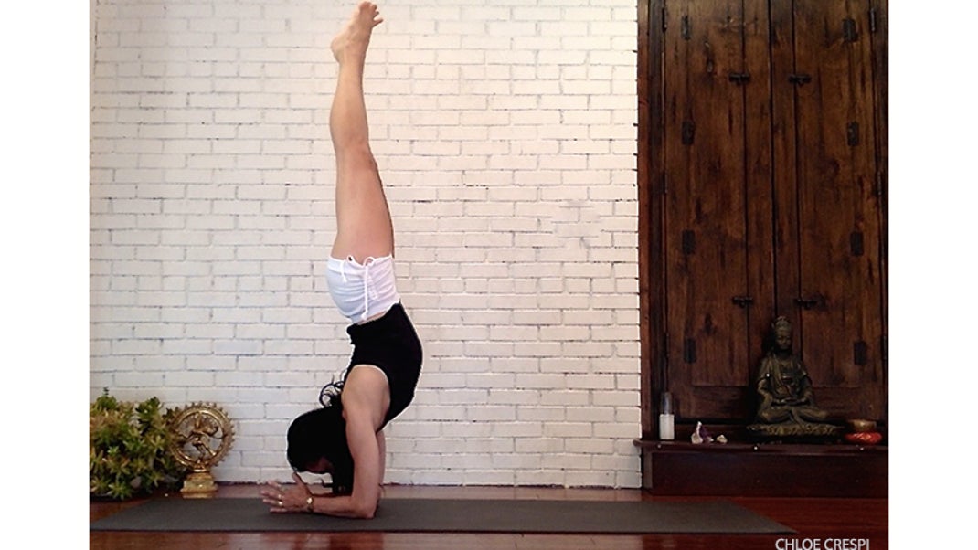 Pincha Mayurasana left-right symmetric forearm balance similar to Vrischikasana, but the legs are straight, stretched up over the head, with the back less extremely arched ![]() source: Yoga Journal |